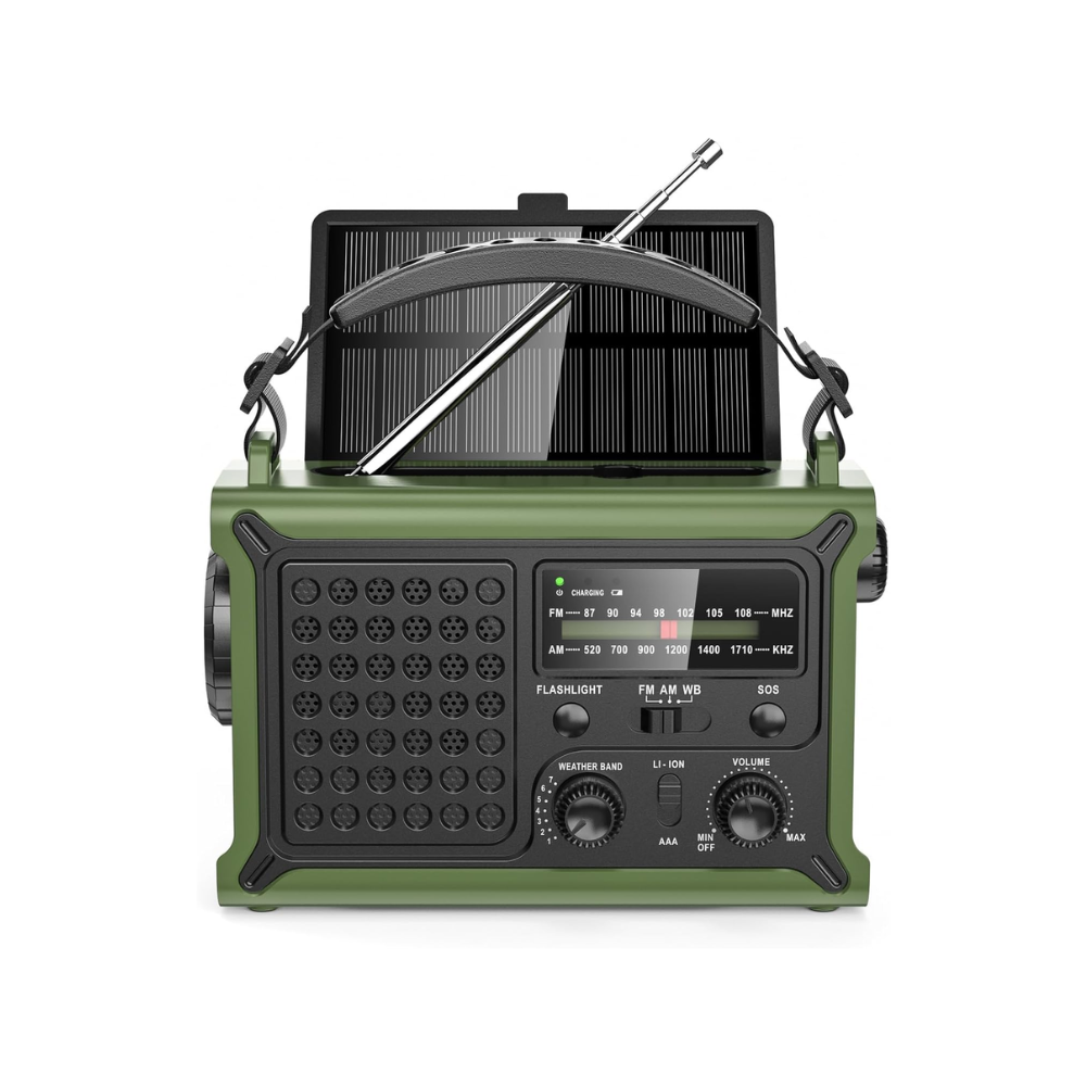 Radio con bateria y alimentación de panel solar. Perfecta para Familias en caso de emergencia. Buen alcance de señal para escuchar las noticias y retransmisiones civiles.
